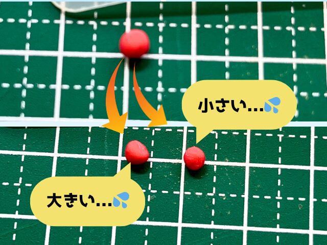 例えば、”5mm”と書かれたスケールで計った粘土を丸めると直径5mmの玉ができるってことですね