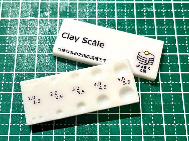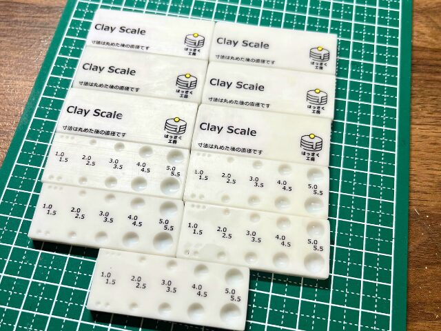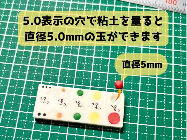 書いてある通り、スケールで計った粘土を丸めるとその穴近くに記載されている直径になるように設計しています