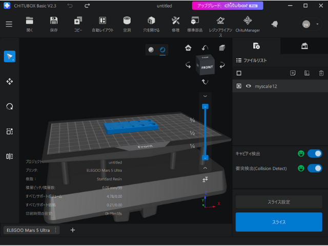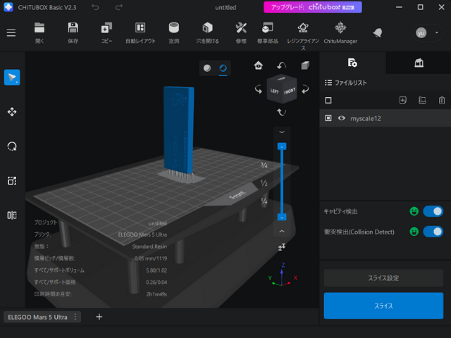 私が使っている3DプリンタがELEGOO製のMars 5 Ultra なので、これと仲の良いCHITUBOXで設定していきます