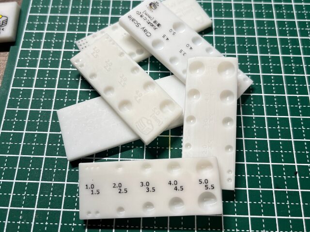 3Dプリンタ用のレジンでできているので、パジコ様のカラースケールよりも粘土がスケールにくっつきがちです